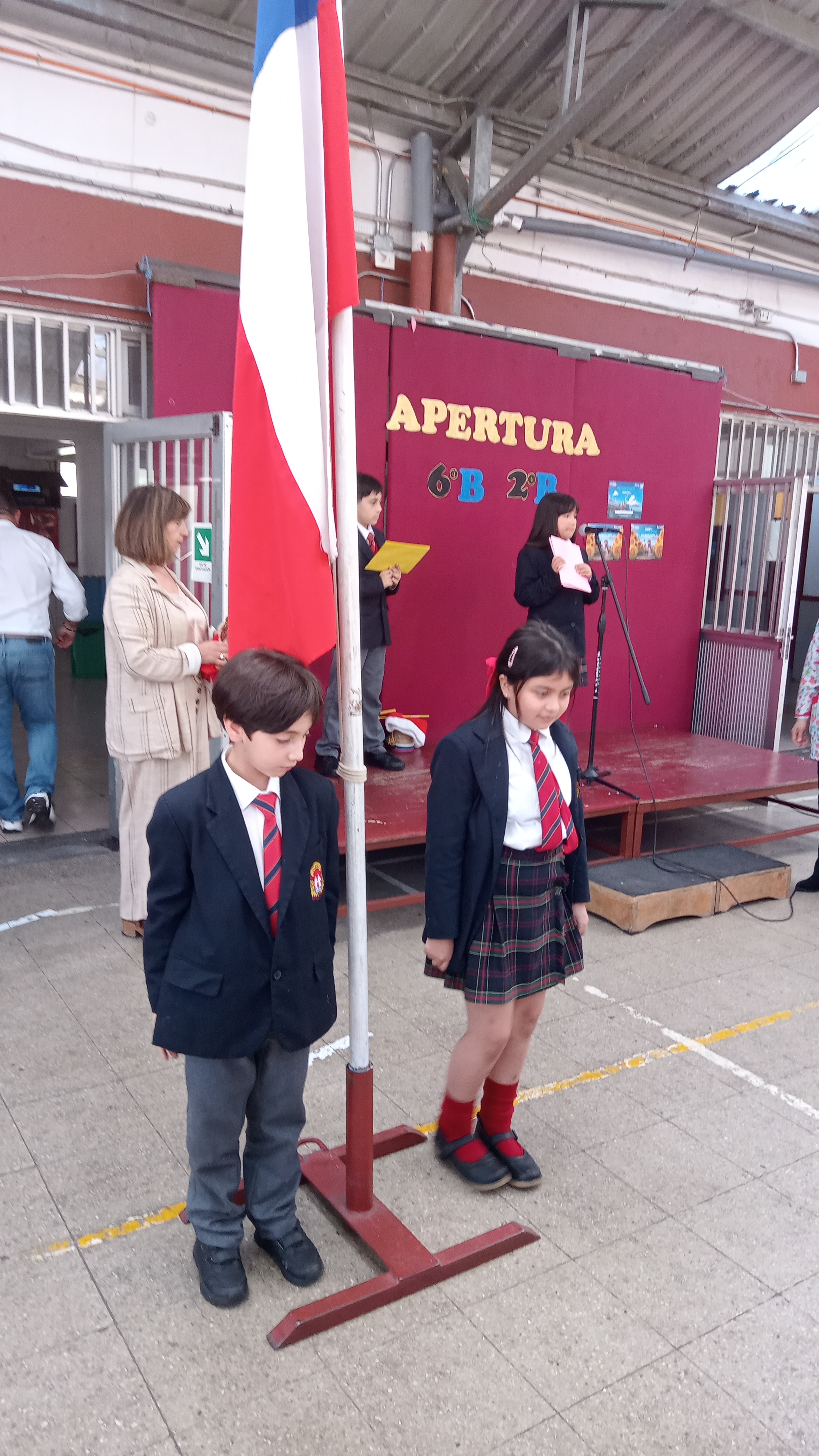 Con el objetivo de potenciar la formación ciudadana, el aprender a escuchar a otros y el respeto por el himno patrio. Este acto de apertura se realiza cada lunes con el formato: entonación del himno patrio, lectura de efemérides, lectura de noticias, valor a destacar, palabras del director o inspectora general u otro docente, los cursos de la apertura cada semana preparan y cantan una canción y premiaciones cuando corresponda. Los cursos se calendarizan a principio de año.