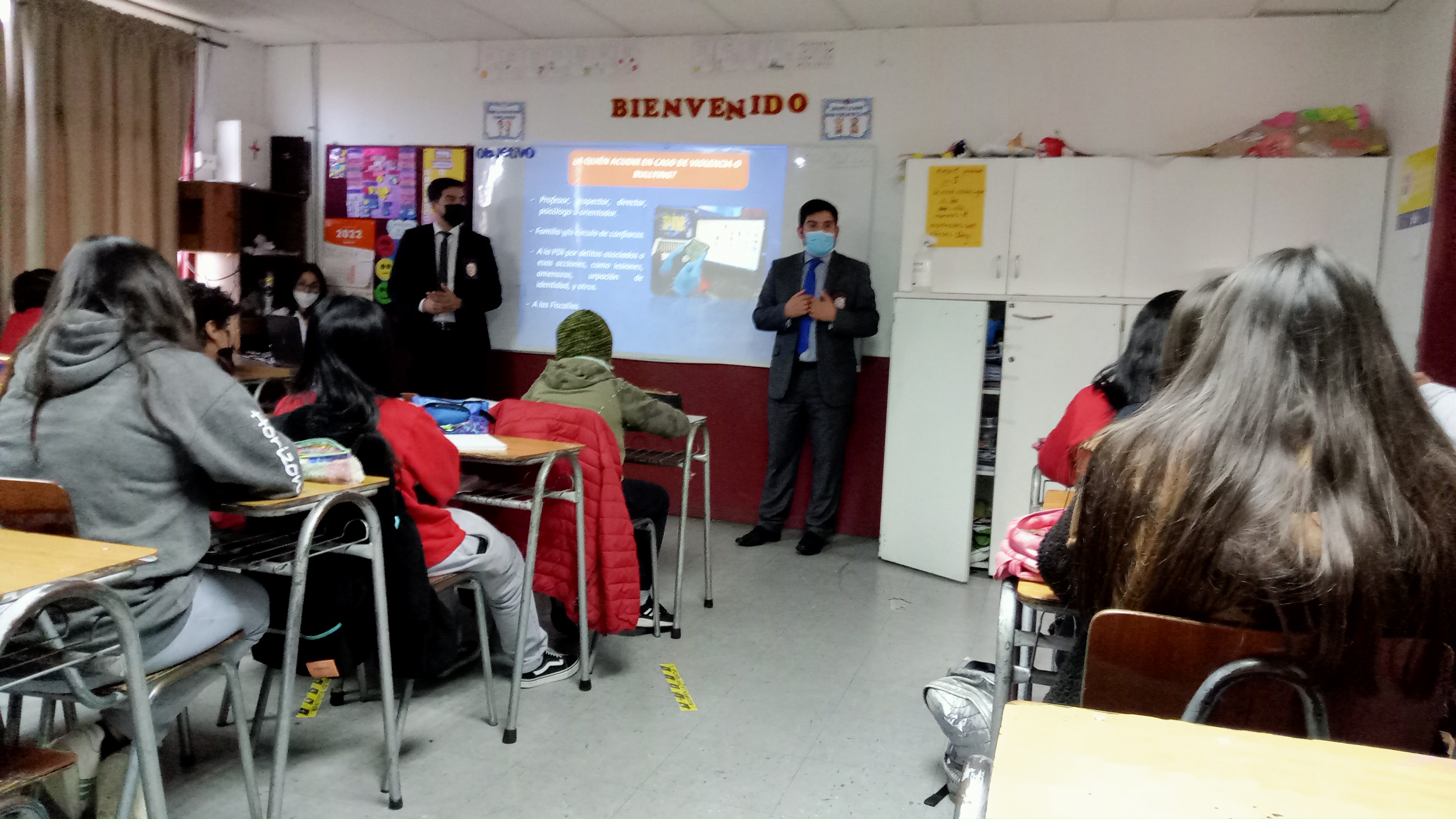 Con la presencia del inspector: Joel Chaparro Araya y el comisario Claudio Cabezas Muñoz de la PDI, hemos tenido la oportunidad de socializar y concientizar, en nuestros alumnos y alumnas los temas de bullying y ciberbullying.